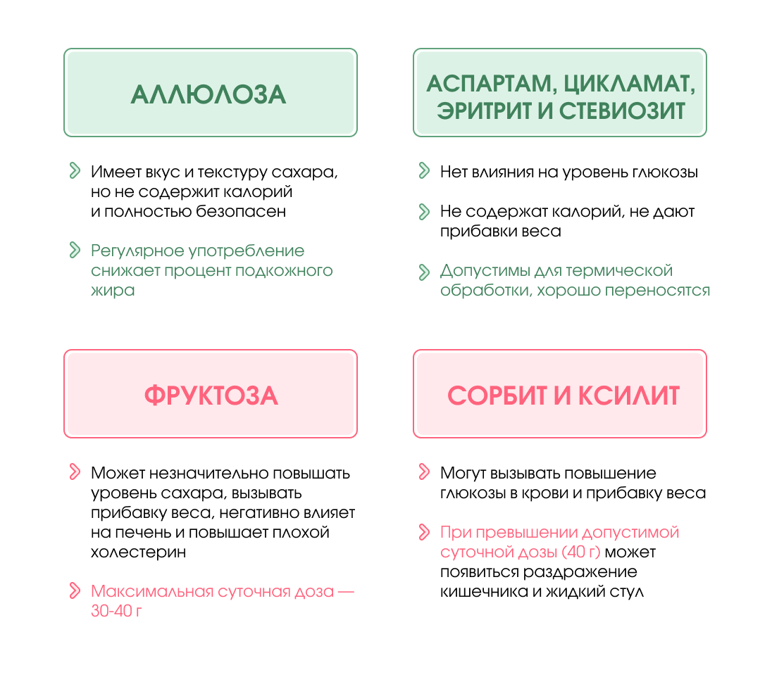 Я никогда не рекомендую сахарозаменители пациентам. Например, фруктоза может повышать уровень глюкозы, увеличивать массу тела, нарушать работу почек.